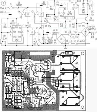 麦克风MIC1可用收录机中的小型内置话筒;可控硅用小型TO-92封装单向可控硅,如MCR100-6、MCR100-8等;继电器用12V双触点继电器,如943-IC-12DS、963-IC-12D、R6-112-I、RU-SS-112D、JRZ-12D、RAS-1210等型号。DW1用0.5W以上的5~6.5V稳压管,其余元件见图1注。