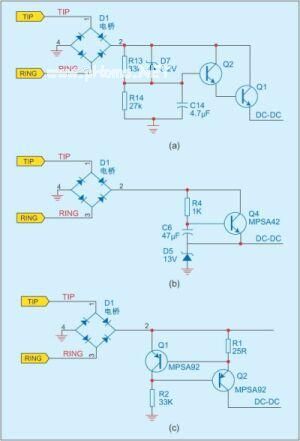 以前使用的普通电话机只需要很小功率就可满足正常通话的要求。它们利用交换机的馈电和简单的并联或串联线性稳压电路提供的几毫安电流,驱动通话电路工作,而不用过多关心效率与过流保护的问题。