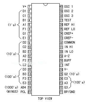 ICL7136主要用于电压测量的模/数转换器。可将模拟电压量转成数字量显示出来。该集成电路需配40脚的插座。