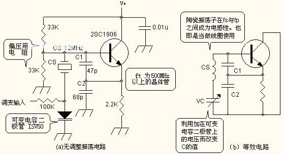 在陶瓷振荡器的电感性领域fs~fp晶体的电感性领域fs~fp的数十倍。因此,在做频率调变(FM)时,使用陶瓷振荡器较容易取得高的调变度或者说“响度”、“拾音灵敏度”等。
