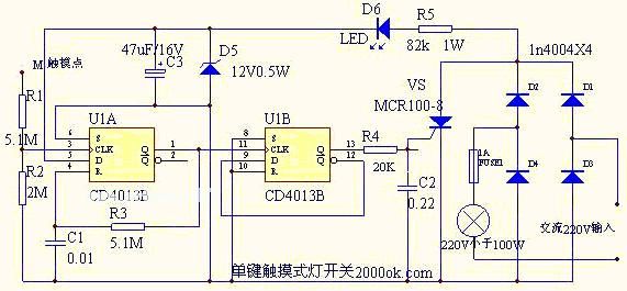 单键触模式灯开关电路图