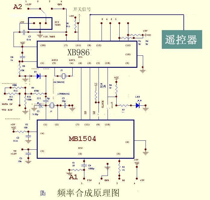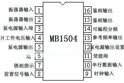 (2) MB1504 系列为日本富士通公司的大规模集成数字锁相频率合成器,(附: 资料下载 ) 采用 CMOS 工艺,是一种具有吞除脉冲功能的单片串行集成锁相频率合成器芯片。