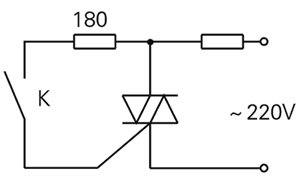 这种交流固态继电器有一个缺点,它的双向可控硅不是在交流电过零时触发导通,其结果是正弦波不完整,这瞬间会产生对电网的干扰。外接三端双向可控硅耐压要大于400V,工作电流应大于负载最大电流。