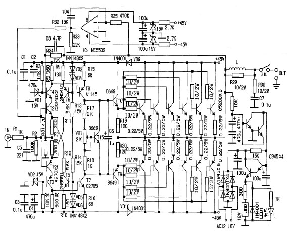 2.本功放采用全对称线路,互补推挽放大形式,而且输入级采用恒流源作负载,有效地隔离了电源噪音和减少了非线性失真,使本功放噪音极低,背景干争.解析力强。