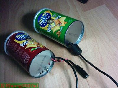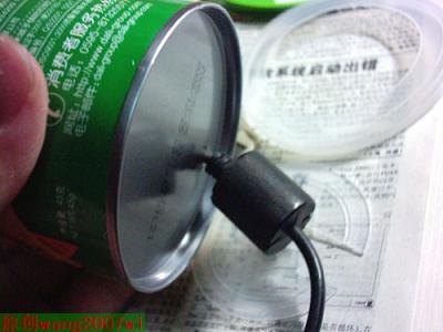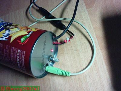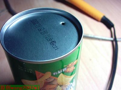 对了,在薯片桶里先贴一张白纸,因为薯片桶的内壁有点像铝箔,我怕导电才这样做的