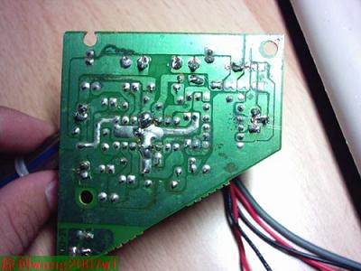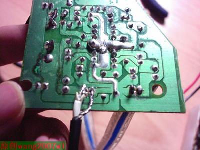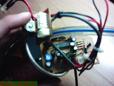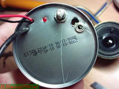 我是先按的中间的音量旋钮,然后按电源指示灯,电源指示灯要用热熔胶粘上,上音频输入口的时候发现一个无奈的状况,我先前开的那个孔相离的太近了,音频输入孔根本安不上,唉,只好重新钻孔了。。。幸好是在背后,不太影响美观