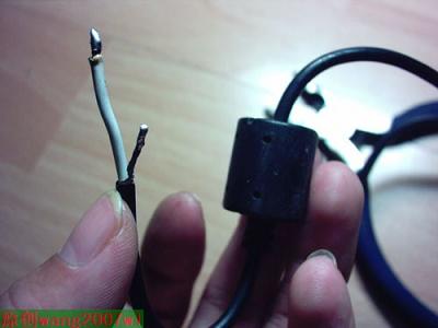 由于原来左右声道是用的是音箱专用扁线,不适合从底部打孔穿线,也不美观,所以我另找了一条废旧笔记本变压器上的输出线,这线要赞一下,是同轴线还带磁环,作音频线应该没问题