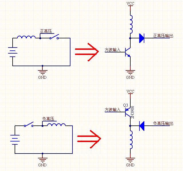 你可以很清楚看到演变,电路中仅仅把开关换成了三极管换而已. 不要小看这两个图,事实上,所以开关电源都是由这两个图组合变换而来,所以掌握这两个图非常重要.