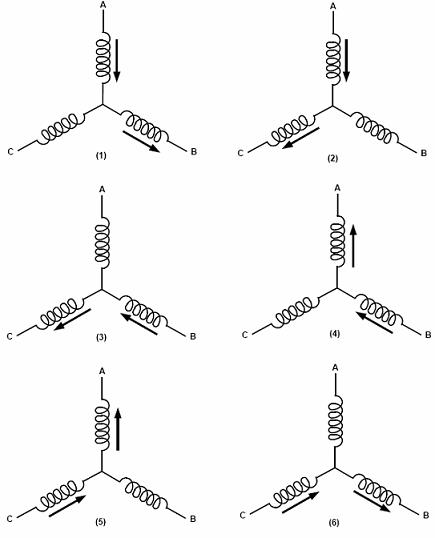 关于电机运行的换相步骤,需严格按照以下的换相顺序如图4所示,应用中需要调换电机的转动方向,只需把电机的任意两根相线对调即可。
