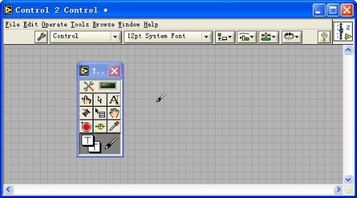 4. 导入图片。首先将按钮置为无色透明,方法是从LabVIEW菜单中“Window->Show Tools Palette”,然后将着色工具的前景色和背景色都置为无色透明,用此着色工具点击按钮,将其置为完全无法直接看到的透明状态,如图4所示。