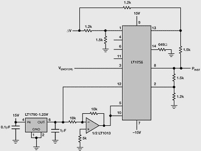 图4所示为LT1256如何结合分离的电压电流信号产生电路的瞬时功率。