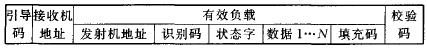 引导码和校验码由nRF9E5自动加载,其他都由内置的微控制器程序产生。识别码为本接收机代号,与其他的接收机区分开来。状态字为1位,值为0时,表示后面的数据为命令字,反之为数据字。数据1……N根据实际情况设置字数。填充码表示本帧在不够规定的长度时,填若干个0到达规定的帧长度。接收控制数据时,nRF9E5先接收一帧数据包,分别验证引导码、接收机地址和校验码,正确后再将有效负载数据送入微控制器处理;当微控制器判断有效负载中的识别码和本机识别码号一致时,继续处理后继数据,否则放弃该数据包,并要求重发。当nRF9E5处于发射模式时,接收机地址和有效负载由微控制器按顺序送入射频模块nRF9E5,引导码和校验码由nRF9E5自动加载。