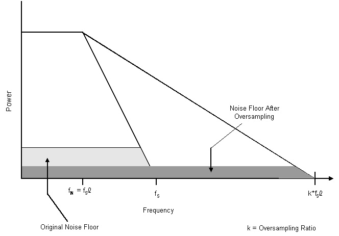 过采样、噪声成形、数字滤波和抽取是增量累加转换器用来降低噪声并产生高分辨率输出数据的4种重要方法。假定以频率fS对一个数据转换器的输入信号采样,根据数据的奈奎斯特定理 (Nyquist theorem),fS 必须至少是输入频率的2倍(fIN=fS/2)。过采样是以高于输入信号频率两倍的频率对输入信号采样。一个较大的过采样比(k)将产生一个更加充分的数字位流表示。组成位流的 “1” 或 “0” 越多,输入信号的数字近似就越好。图2显示了以采样率k x fS/2进行的过采样怎样让调制器将相同数量的噪声扩展到更宽的频率范围上。这极大地缩小了在所关注频带中的噪声层。过采样率每增加2倍,理想的信噪比(SNR)就提高3dB。较大的SNR意味着增量累加转换器可以更好地分辨模拟输入中更小的变化。