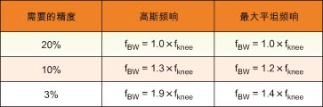 表1:根据需要的精度和示波器频率响应的类型计算示波器所需带宽的系数