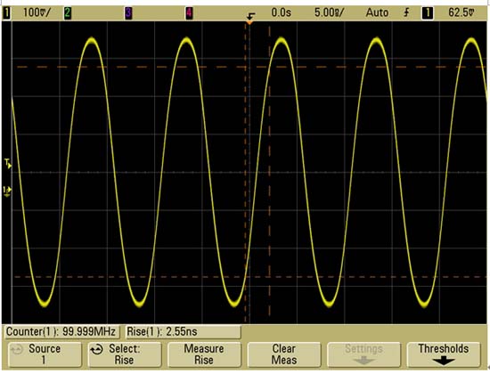 下面我们将用几个带宽不同的示波器对与该例中的信号具备类似特性的一个数字时钟信号进行测量。
