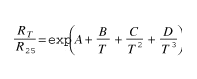 这里T指开氏绝对温度,A、B、C、D是常数,根据热敏电阻的特性而各有不同,这些参数由热敏电阻的制造商提供。