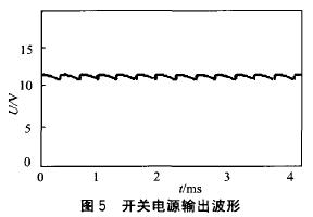 为了检验该开关电源的性能,笔者按上述应用电路进行了测试,得到开关电源的输出波形图以及不同输人电压和不同负载时的输出电压如图5所示。