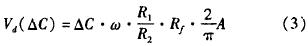 该系统输出Vd为一直流信号,ΔC为传感器的电容变化量。