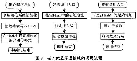 根据图3和上述分析,可以得到用于智能传感器的嵌入式蓝牙SoC 器件的电路结构,如图5 所示。通信栈模块调用操作流程如图6 所示。
