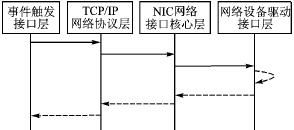 嵌入式IPv6协议栈采用分层结构进行设计,将整个协议栈(包括TCP及上层应用)分为4个层次: 事件触发接口层、TCP/IP网络协议层、NIC网络接口核心层和网络设备驱动接口层。
