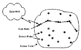 传感器网络包括汇聚点(sink)和传感器(sensor)节点。传感器节点数目往往巨大,分布在监测区域(sensor field)内,每个节点除了进行环境信息的收集,还具有数据处理和转发路由的功能,是传感器网络研究的重点。汇聚点的个数通常很少,具有发布监测命令和收集数据的功能,还可以实现与Internet的通信。