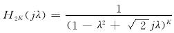 假设要设计n=2K(K=1,2,…)阶低通滤波器,ω0为二阶低通滤波器的转折频率,ωn为n阶滤波网络的转折频率,则n阶低通滤波网络的归一化传递函数为: