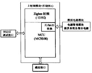 子机主要包括MCU模块、Zigbee射频模块、感应模块和电源/充电电池模块4个模块。子机框图示于图5,各模块说明如下: