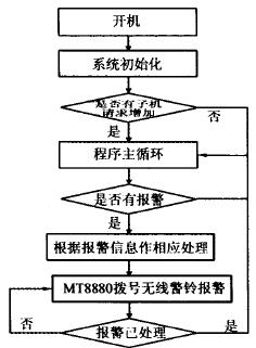②对已加入到网络中的子机进行实时监控,正确判断监控子机是否处于监控座机的监控范围内,如果子机超出座机的监控范围、子机被移动或者子机电压过低,则座机发出相应的报警信息,同时将报警信息存人系统FLASH中,并通过本地响铃、无线警铃和有线电话或者手机通知相关人员。
