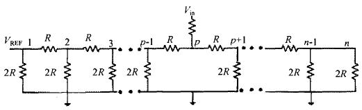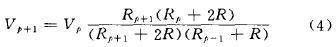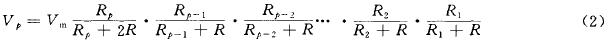 第p+1个电阻被接到Vin时,由式(2)得到Vp+1,再将式(2)代入Vp+1 。得: