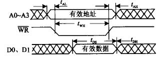 图3是控制数据输入时序。可在WR的下降沿经逻辑接口给滤波器A、B中的fclk/f0、Q及工作模式控制字分别赋予不同的值,从而实现各种功能的滤波。