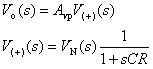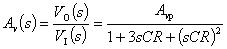 该传递函数式的样子与一节RC低通环节的增益频率表达式差不多,只是缺少通带增益Avp这一项。