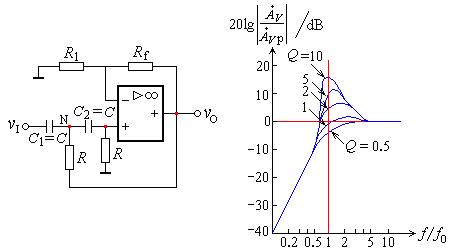 定义有源滤波器的品质因数Q值为f=f0时的电压放大倍数的模与通带增益之比