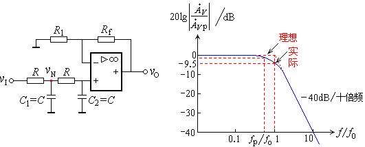 图8 二阶压控型LPF 图9 二阶压控型LPF的幅频特性