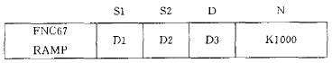 预先将初值与目标写入数据寄存器D1、D2,启动后,D3内容从D1到D2慢慢变化,移动时间为N次扫描,传输完毕后M8029置ON。