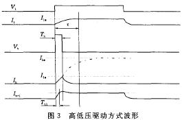 图3中的Vh是指驱动高电压;Vl是指驱动低电压。由于电路参数没有改变,只是输入电压改变了,所以电流Il和Ih 的上升时间τ并没有发生变