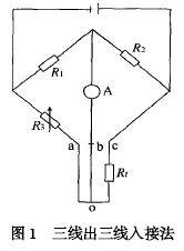 导线采用三芯屏蔽线, a、b、c 三点到o 点的长度相等, 导线电阻值也相等。即