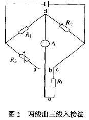 用铂热电阻测温时, 将铂热电阻接入二次仪表, 例如巡检仪温度模块等, 通过二次仪表测量出铂热电阻的阻值,从而算出温度。这些二次仪器常用的基本类型是采用桥式线路。目前一般采用的方法是三线制接法。可以说, 铂热电阻测温技术应该是非常成熟的。