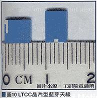 陶瓷天线是另外一种适合于蓝牙装置所使用的小型化天线。陶瓷天线的种类可分为块状(Block)陶瓷天线与多层(Multilayer)陶瓷天线,前者是使用高温(摄氏1000 度以上)将整块陶瓷体一次烧结完成后再将天线的金属部份印在陶瓷块的表面上;后者则采用低温共烧(Low emperature Cofired)的方式将多层陶瓷迭压对位后再以800~900 度的温度烧结,所以天线的金属导体可以依设计需要印在每一层陶瓷介质层上,如此一来便可有效缩小天线所需尺寸,并能达到隐藏天线设计布局的目的(如图10 所示)。