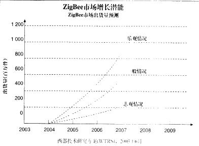 络。图2是西部技术研究方案公司(WTRS)对ZigBee的一个市场预测。