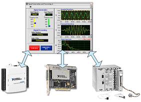 虽然软件是每个虚拟仪器的核心,然而几乎所有的虚拟仪器都需要测量硬件精确地取得测量结果。由于独立于所选择的编程环境,所以虚拟仪器软件必须提供出色的与系统测量硬件的结合。NI的软件,包括LabVIEW,提供了与来自上千家第三方硬件厂商数以万计产品的开放式连接,如传感器、摄像机、执行器、传统仪器和插入式设备(USB、PCI等)。
