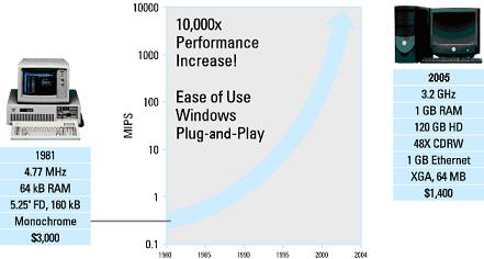 图2,PC 10,000倍的性能提高有助于驱使虚拟仪器系统性能提高