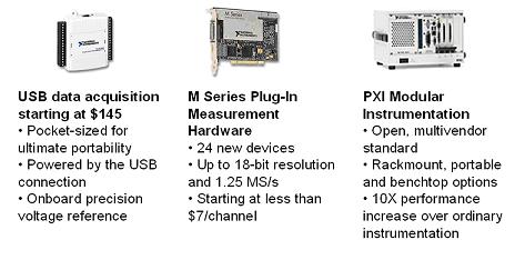 2004年,NI测量硬件提供给客户超过6,000,000套虚拟仪器测量设备。从低成本的USB数据采集到图像采集和过程控制视觉系统,再到2.7GHz的RF测量和GPIB总线通信,NI已经在25,000多家公司面前展示了它可以提供完成虚拟仪器所需要的测量硬件和可扩展的硬件平台。