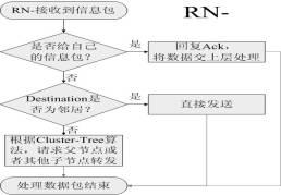 Cluster -Tree+AODVjr路由算法汇聚了Cluster-Tree和AODVjr的优点。网络中的每个节点被分成四种类型:Coordinator、RN +、RN-、RFD(RN:Routing Node,路由节点;RFD:Reduced Function Device)。其中Coordinator的路由算法跟RN+相同,Coordinator、RN+和RN-都是全功能节点(FFD: Full Function Device),能给其他节点充当路由节点;RFD只能充当Cluster-Tree的叶子(Leaf Node)。如果待发送数据的目标节点是自己的邻居,直接通信即可;反之,如果不是自己的邻居时,三种类型的节点处理数据包各不相同:RN+可以启动AODVjr,主动查找到目标节点的最佳路由,且它可以扮演路由代理(Routing Agent)的角色,帮助其他节点查找路由;RN-只能使用Cluster-Tree算法,它可以通过计算,判断该交给数据包请自己的父节点还是某个子节点转发;而RFD只能把数据交给父节点,请其转发。
