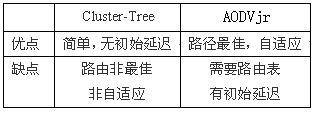 表1 Cluster-Tree和AODVjr的优缺点比较