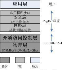 完整的Zigbee协议栈由物理层、介质访问控制层、网络层、安全层和高层应用规范组成。