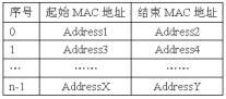 表2是某个节点的黑名单列表,该节点接收到的数据包发送方MAC地址如果符合下列n个公式中的一个,则该节点认为没有接收到数据包,对该数据包不作任何处理。