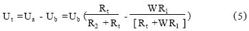 Ut =Ua - Ub =UB R1R0 (αt +βt2 ) /2αt2R0 + R0 + R2 )(R1 +WR1 ) (6)