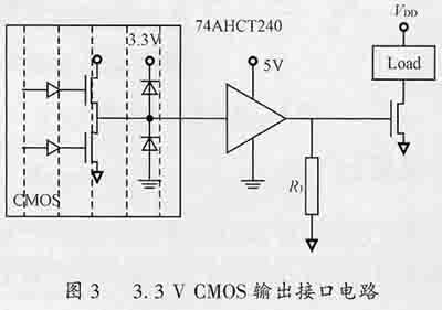 LF2407A采用3.3VCMOS技术,该技术使得电路实现了低功耗工作,同时也带来了一些问题,即接口电平匹配与驱动能力问题。图3给出了3.3VCMOS输出到MOSFET的输入接口电路。许多MOSFET在一定的负载电流下要达到饱和导通栅极电平大于3.3V,因此设计中采用标准5VCMOS缓冲器74HC240将3.3VCMOS转换到5VCMOS电平。