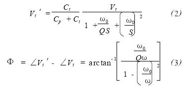 串联电容和并联谐振回路组成。串联电容Ct起移相作用, Cp和L 组成的并联谐振回路起选频作用, Ct与Cp起阻抗变换作用。Vt与Vt'之间的关系如式(2)所示,相移大小为φ。