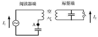 阅读器天线与标签天线之间等效于一个空气松耦合变压器,利用感应磁场与电抗影响实现通信。一方面,当阅读器的调制信号加载到天线线圈上,电流I1使天线产生时谐交变磁场,磁通在标签线圈中感生电压,为标签芯片提供工作能量和指令数据。另一方面,标签端的输入阻抗可以反映到阅读器端,并影响阅读器天线的等效阻抗。标签芯片中的场效管截止或导通,使标签端的天线谐振或短路,反映两种不同的负载阻抗,导致阅读器端A点电压起伏变化。阅读器接收电路实时检测A点电压峰值的变化,把标签反射的负载调制信号提出来。经信号处理后,将模拟信号转换成数字信号,并送入MCU。
